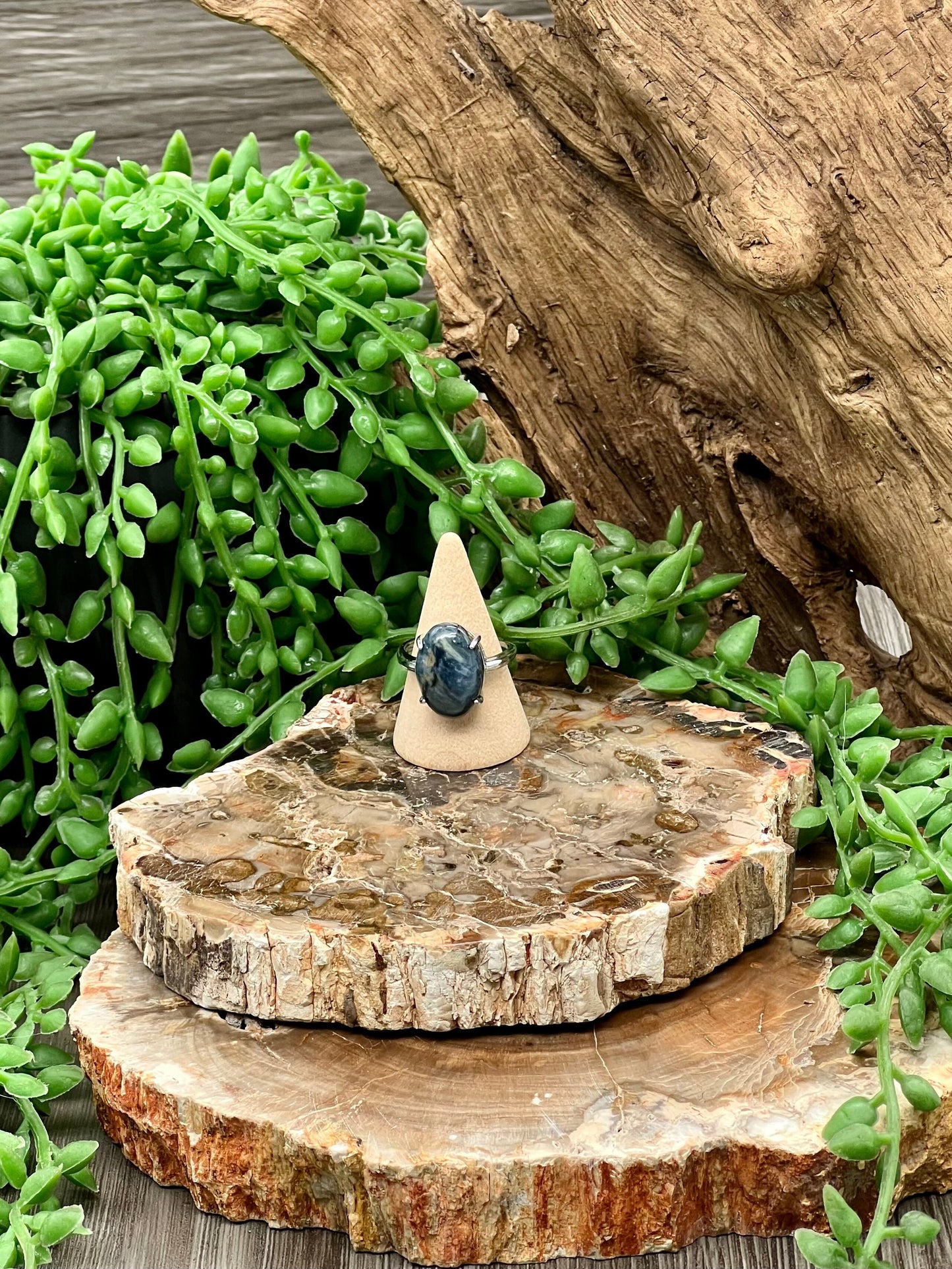 This Blue Petersite Ring is the perfect accessory for any outfit! The unique, natural, genuine semi-precious gemstone is set in a stainless-steel adjustable band to ensure maximum comfort.
