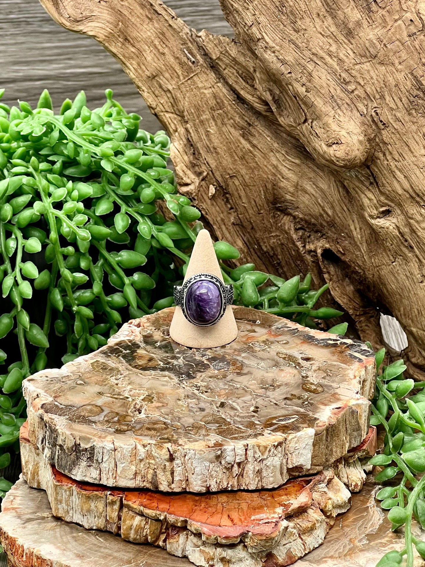 This Charite Ring is an eye-catching symbol of uniqueness and natural beauty. Crafted from a genuine semi-precious gemstone and set in a stainless-steel band, this ring's adjustable fit ensures lasting comfort. Show your unique style, with Charite.