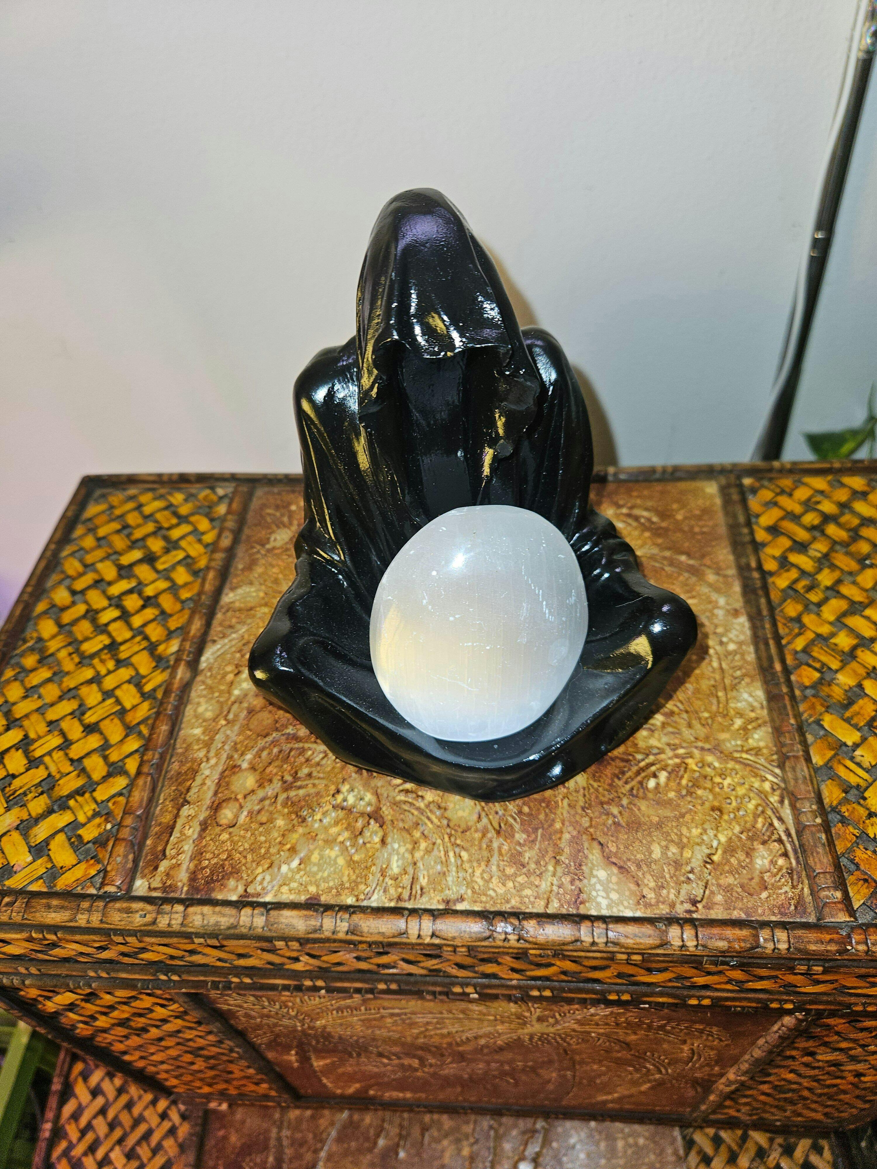 Black Sitting Reaper Resin Sphere Stand
